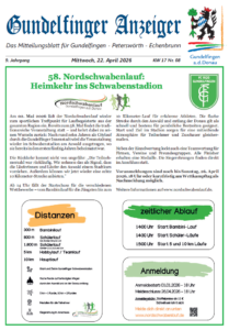 Der Gundelfinger Anzeiger vom 08.04.2026 / KW 15 ist ab sofort als Download verfügbar.